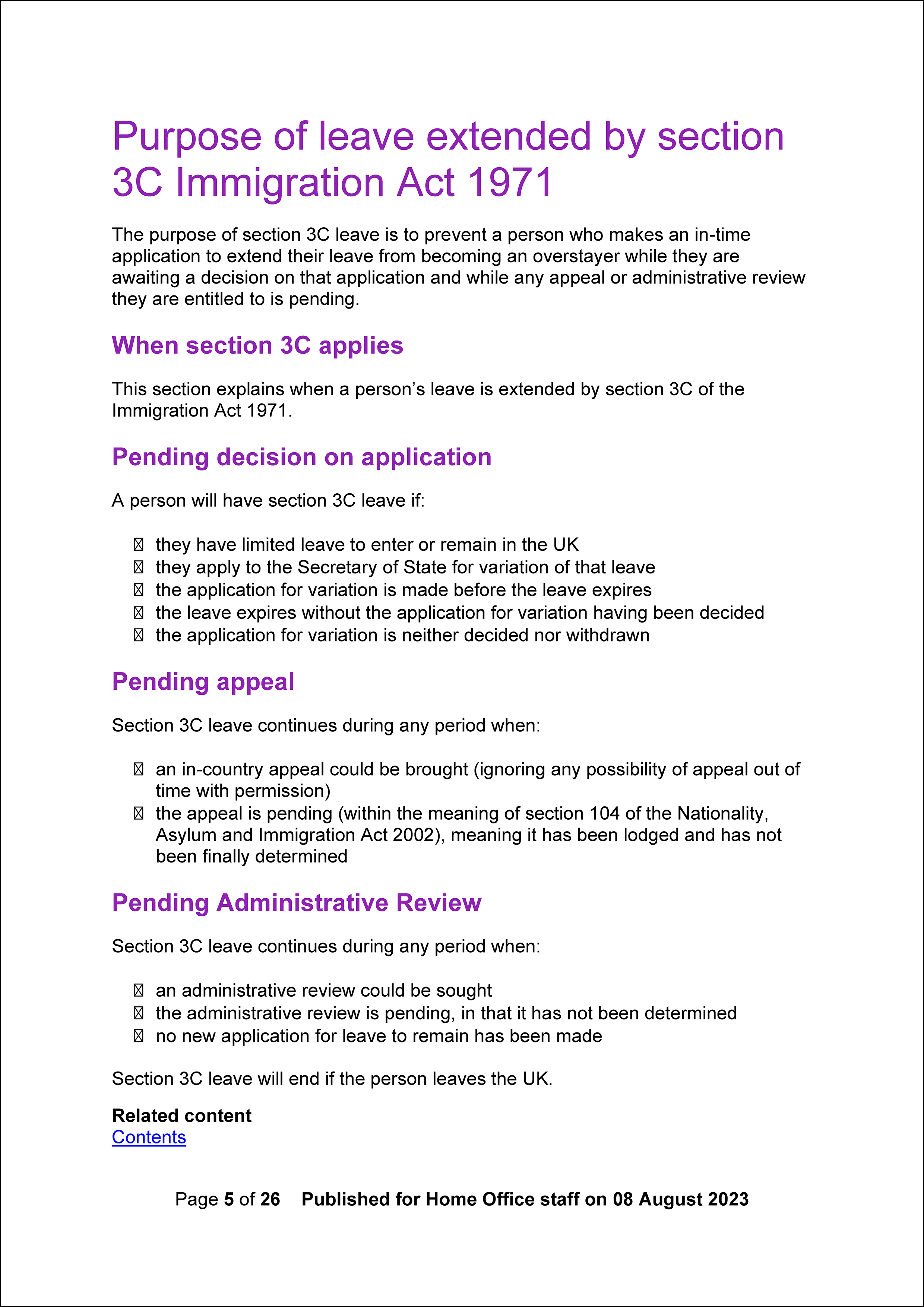Kennedys Law says the application was submitted during Section 3c leave in an attempt to protect our immigration status – completely contrary to immigration law.