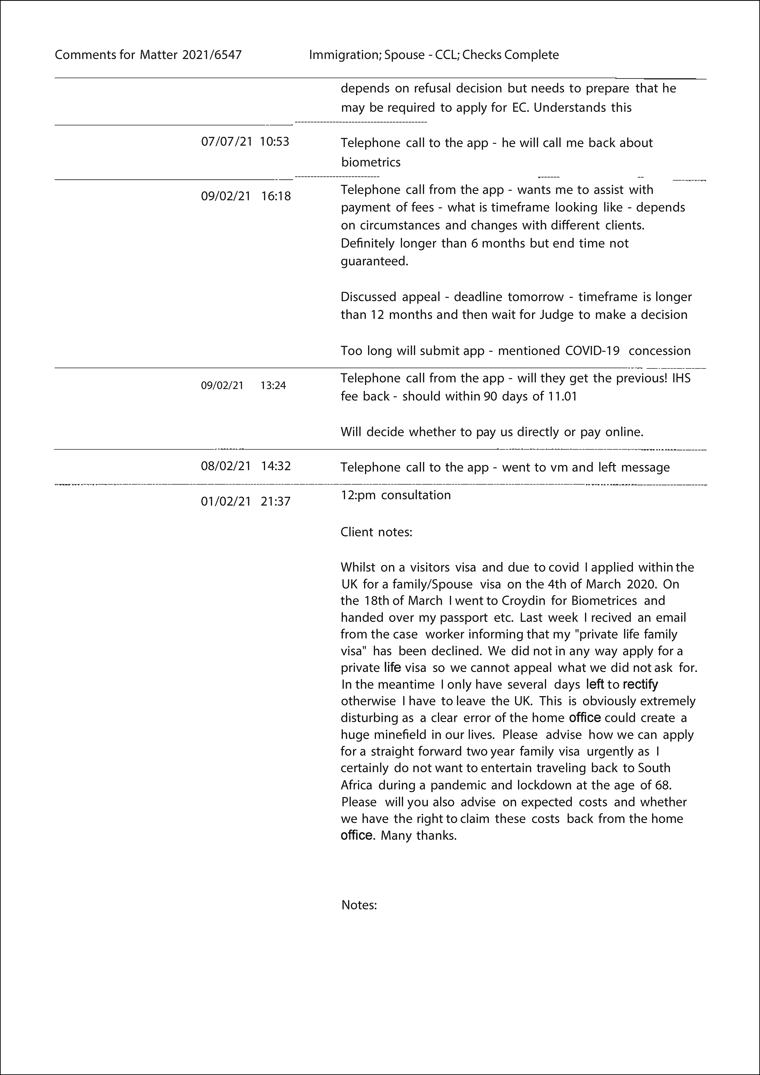 UK MIGRATION LAWYERS INTERNAL SALES NOTES – 1 February 2021