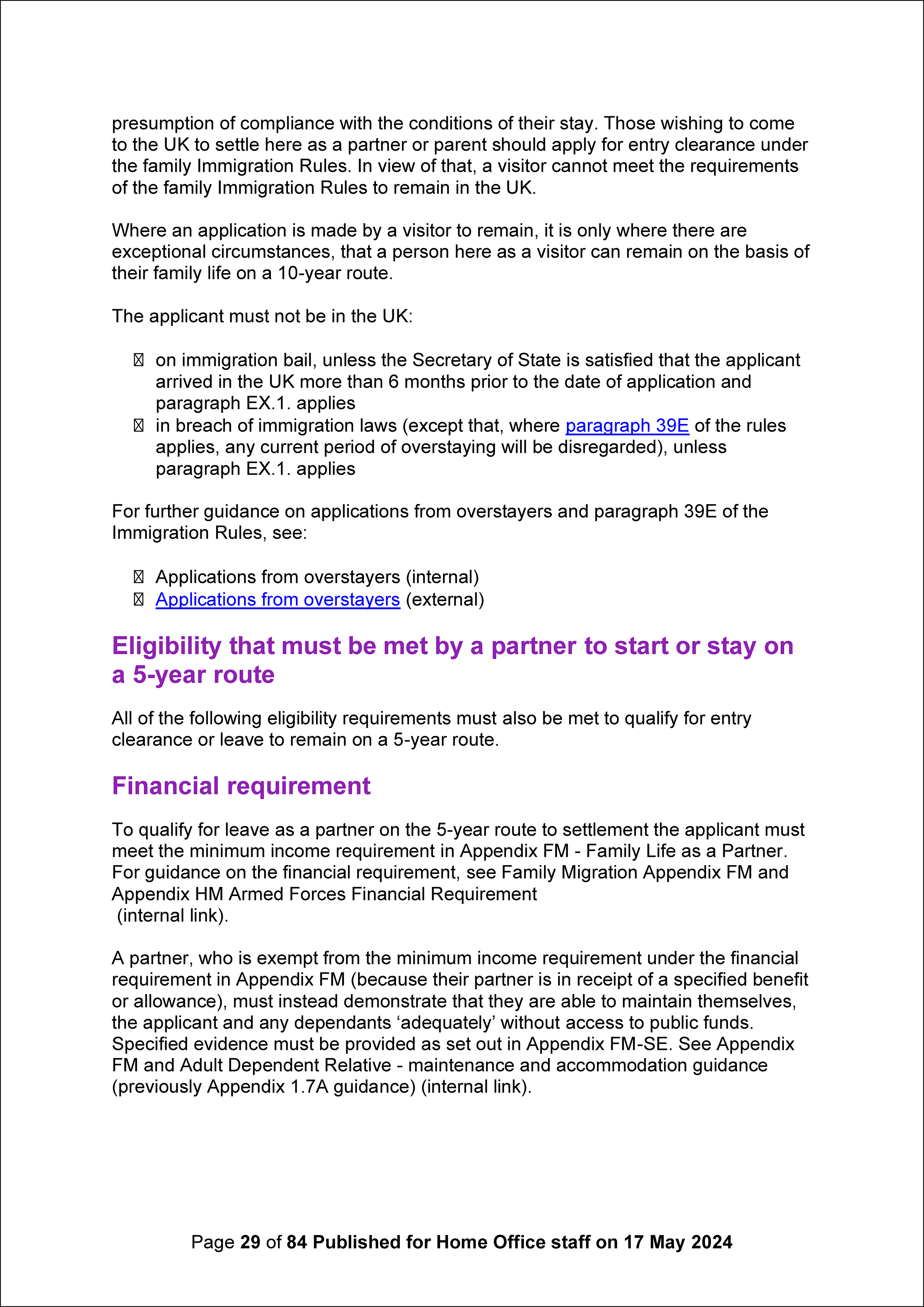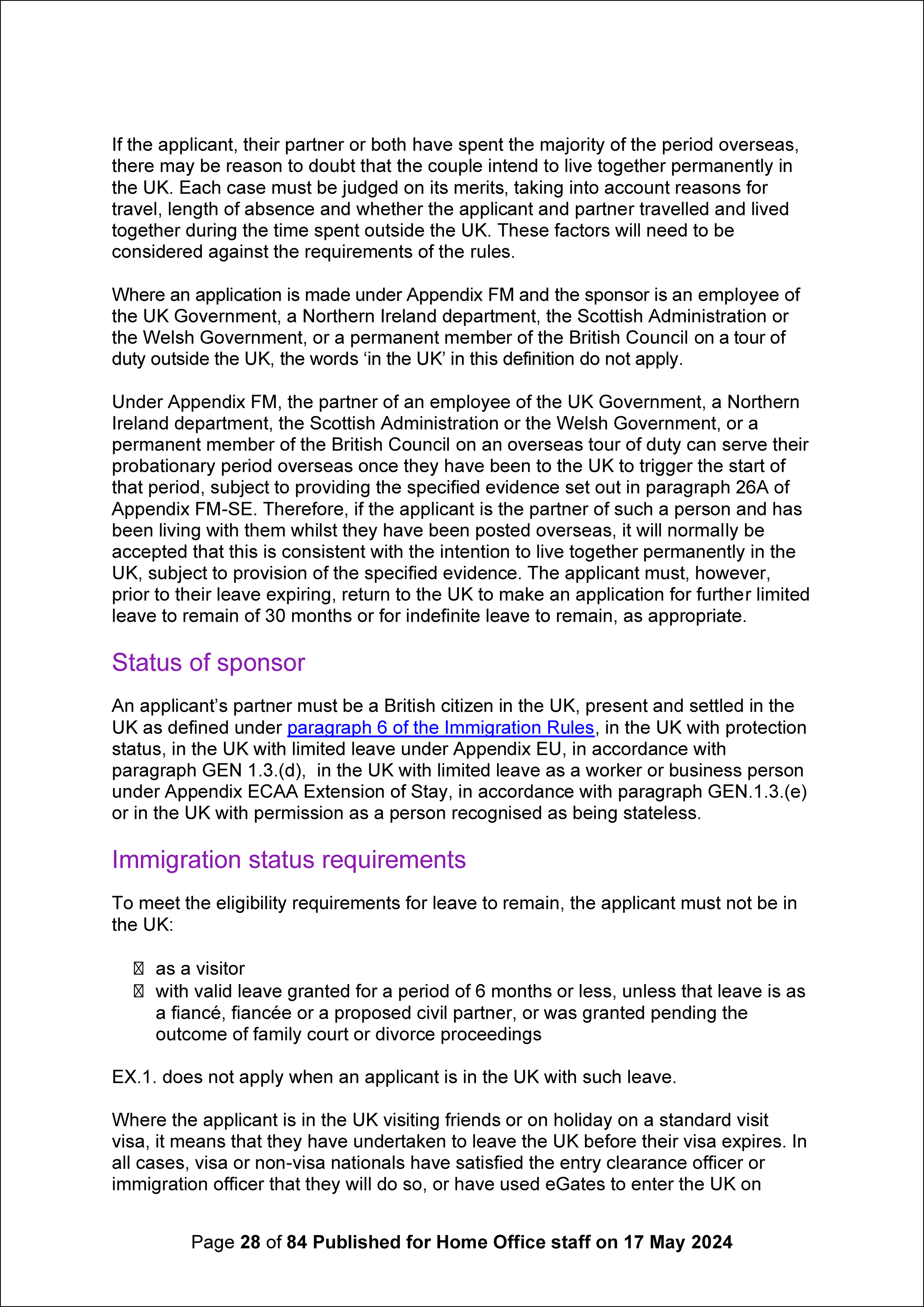 Those wishing to come to the UK to settle here as a partner or parent should apply for entry clearance under the family Immigration Rules. In view of that, a visitor cannot meet the requirements of the family Immigration Rules to remain in the UK.