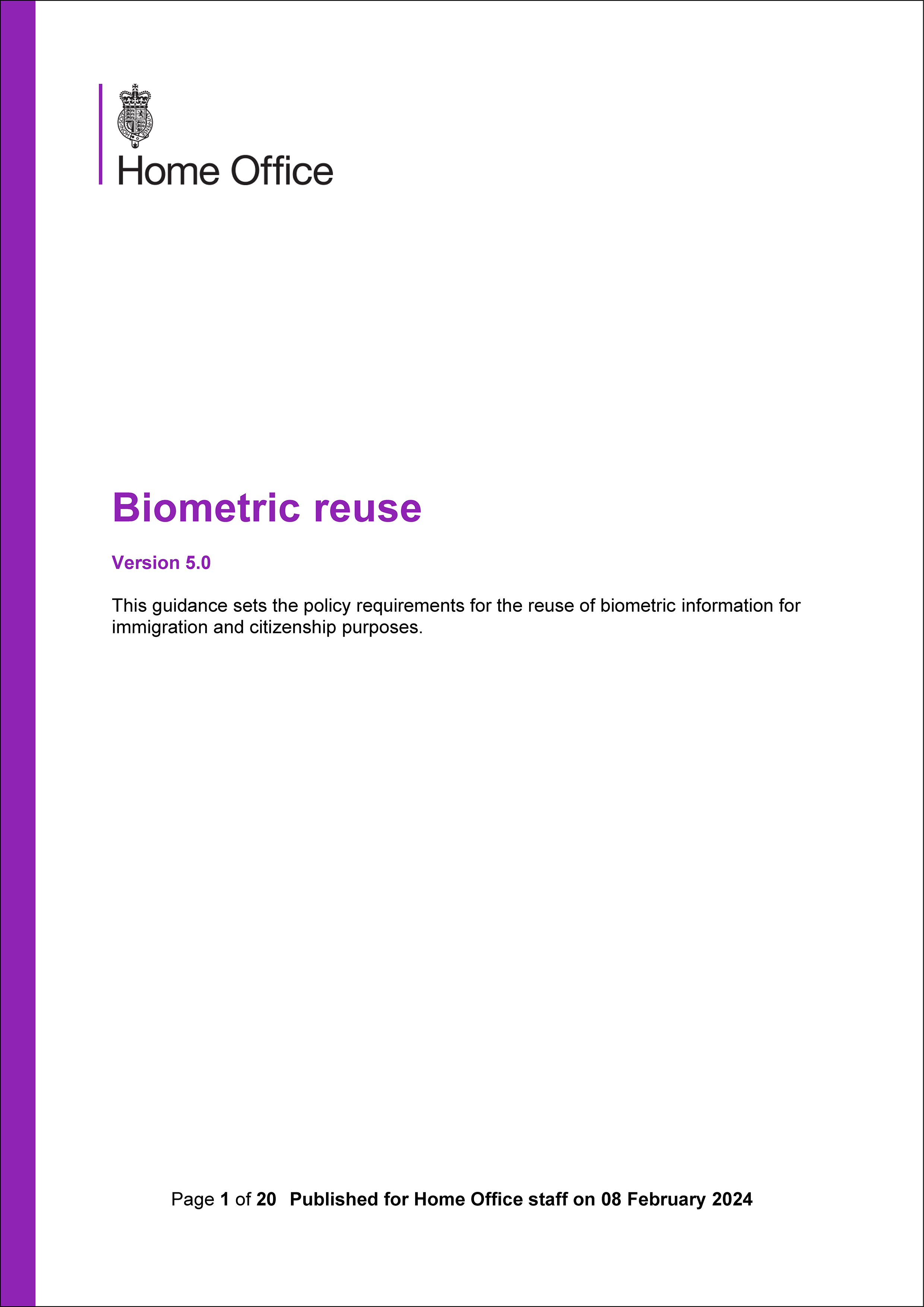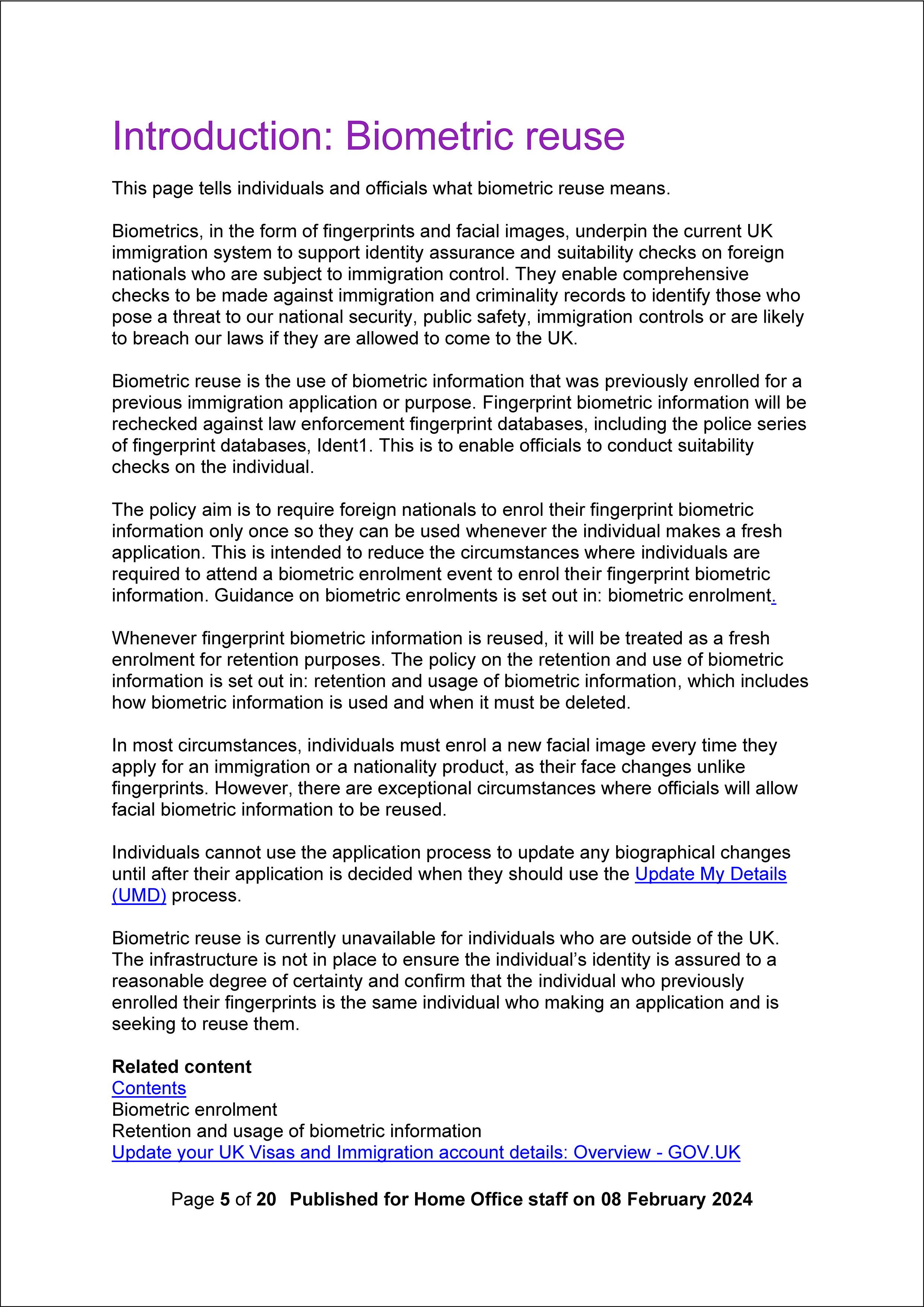 HOME OFFICE BIOMETRIC REUSE GUIDANCE