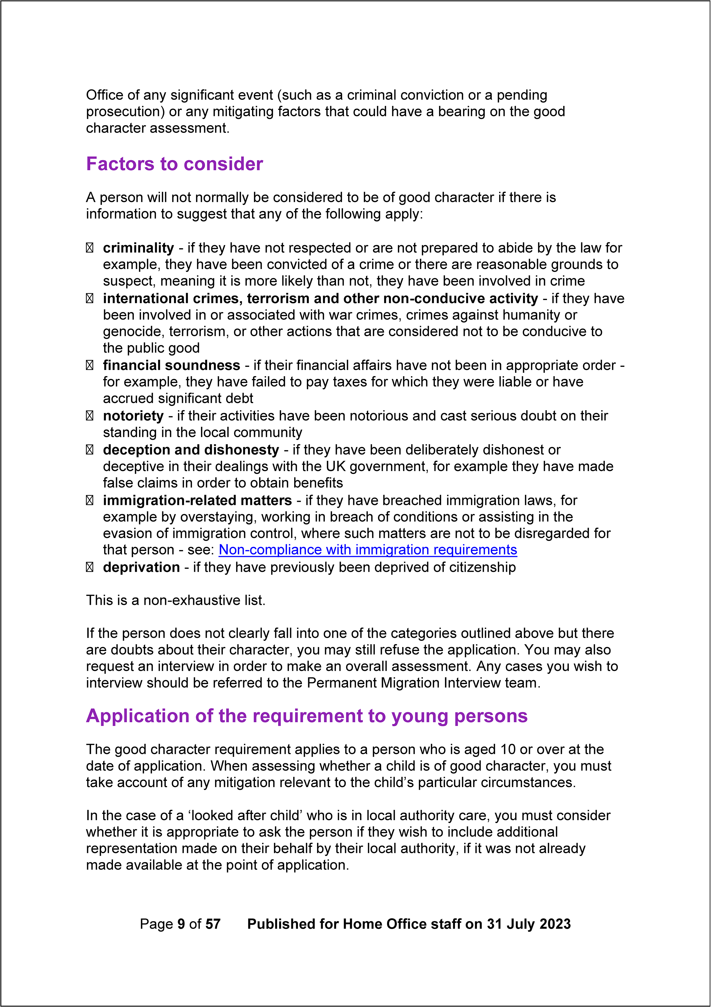 HOME OFFICE GOOD CHARACTER ASSESSMENT